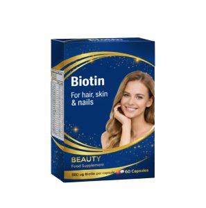 Thairo Via Biotin is a high-quality food supplement formulated with 500 µg of Biotin (Vitamin B7) per tablet to support healthy hair, strong nails, and glowing skin. Biotin, also known as Vitamin H, is an essential water-soluble B-vitamin that plays a key role in maintaining normal metabolic function and energy production.